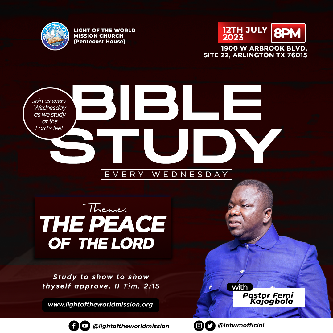 Join us at Weekly Bible Study as we meditate in the WORD. Study to show thyself approved… DATE: 12th July,…
