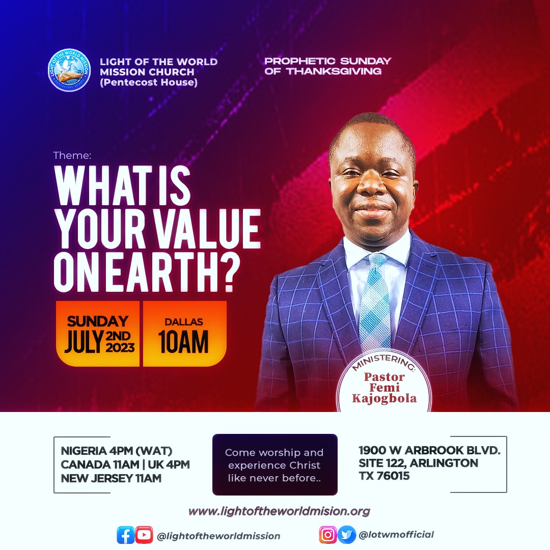 Join us this coming SundayProphetic Sunday of answered Prayer (JUNE) THEME: PRAY UNTIL SOMETHING HAPPEN [PUSH] đź“… 25TH JUNE, 2023Time:…