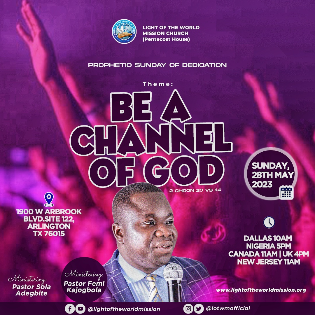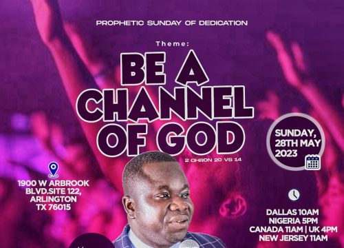 Join us this coming Sunday (Prophetic Sunday of Dedication) THEME: BE A CHANNEL OF GOD📅 28TH MAY, 2023Time: 10:00AM (Dallas,…