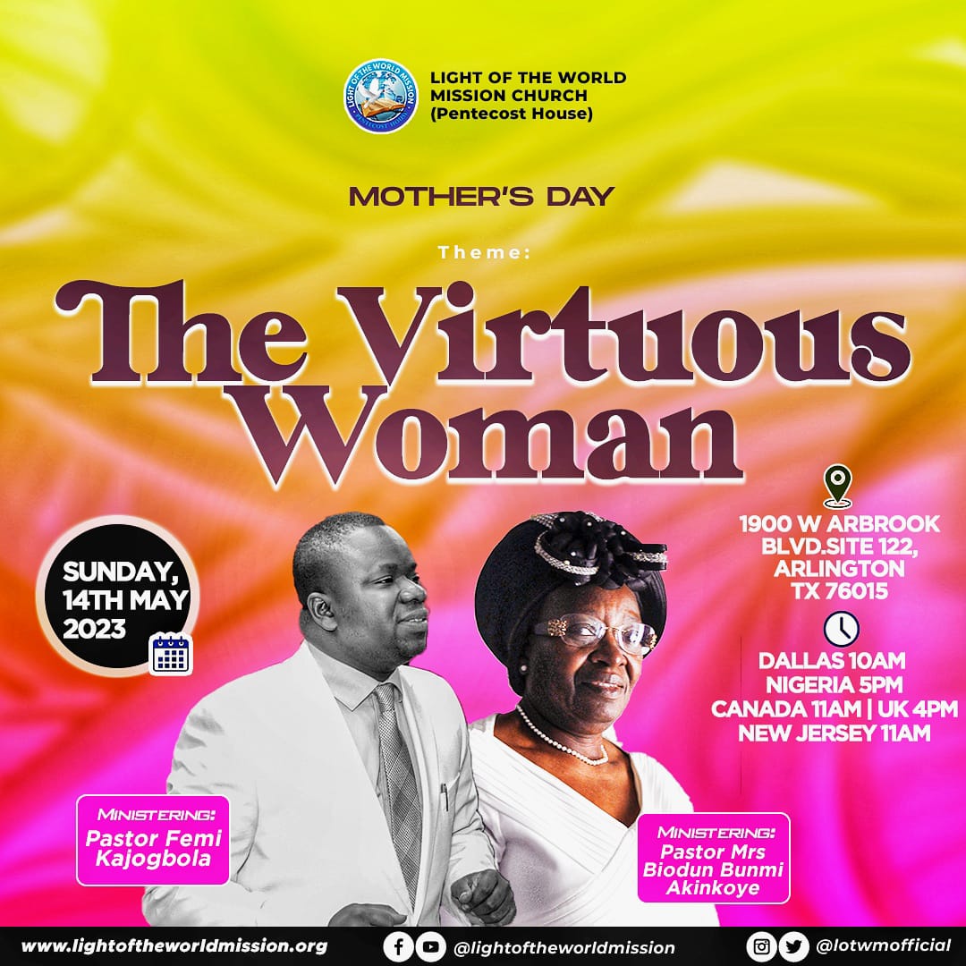 Join us this second Sunday of the Month of MAY.(Mother’s Day ) THEME: THE VIRTUOUS WOMAN 📅 14TH MAY, 2023Time:…