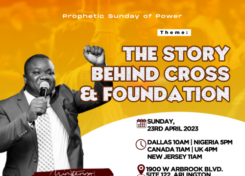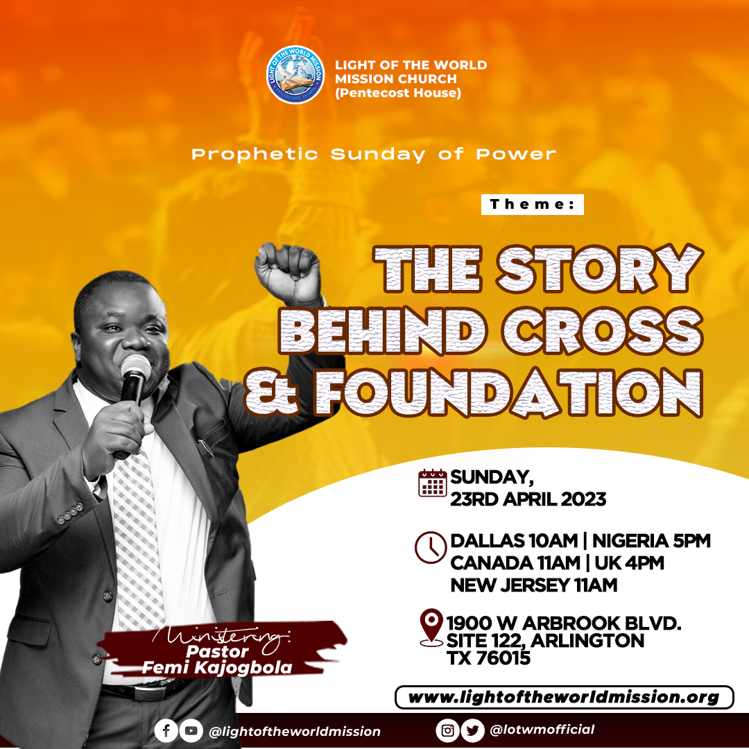Join us this coming Sunday (Prophetic Sunday of Power) THE cross and foundation… THEME: THE STORY BEHIND CROSS & FOUNDATIONđź“……