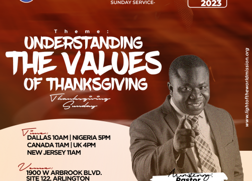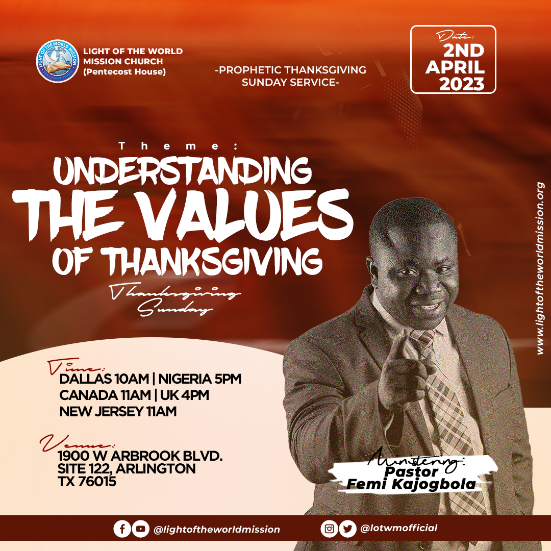 Prophetic Thanksgiving Sunday! Praise the Lord, for His Mercy endureth forever…II Chronicles 20:21 THEME: UNDERSTANDING THE VALUES OF THANKSGIVINGDATE: 2ND…