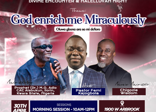A massive Program on its way.It’s going to be glorious and impactful.Kindly join to experience God the more. DIVINE ENCOUNTER…