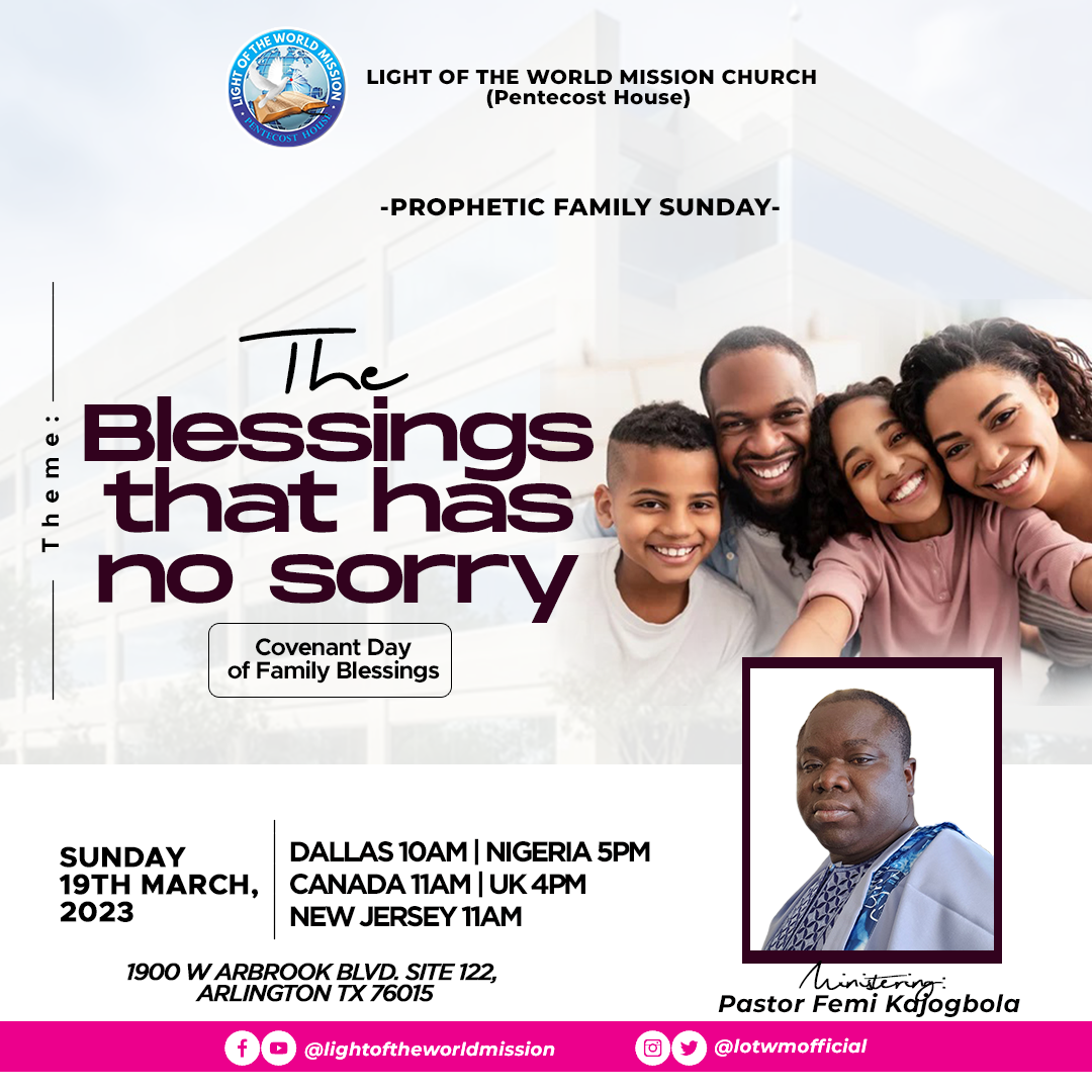 It’s Prophetic Family Sunday!The Covenant day of Family Blessing. Join us as we receive God’s blessing. THEME: THE BLESSINGS THAT…