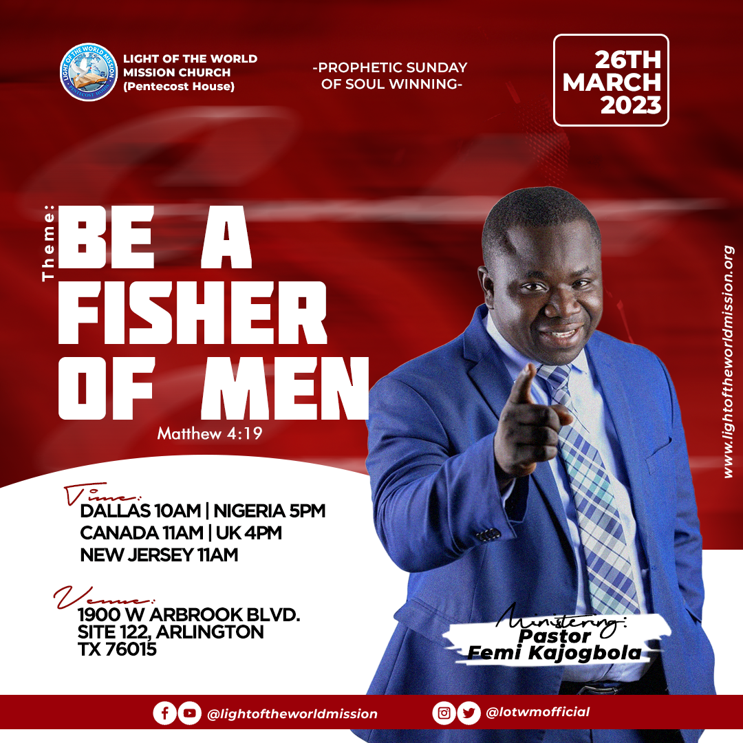 Prophetic Sunday of Soul Winning! Join us as we receive and be a Fisher of Men THEME: BE A FISHER…
