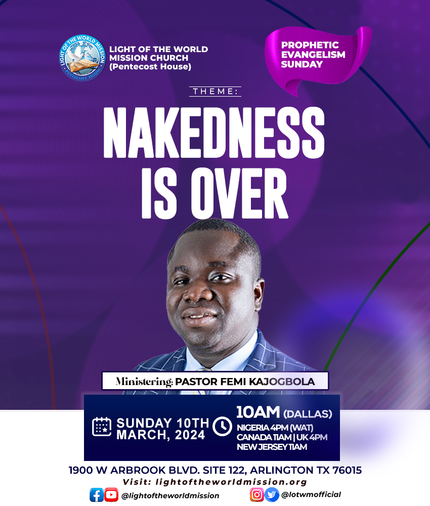 Join us this coming Sunday for a powerful service THEME: NAKEDNESS IS OVER 📅 10TH MARCH, 2024🕐 10:00AM (Dallas, Texas)📍1900…