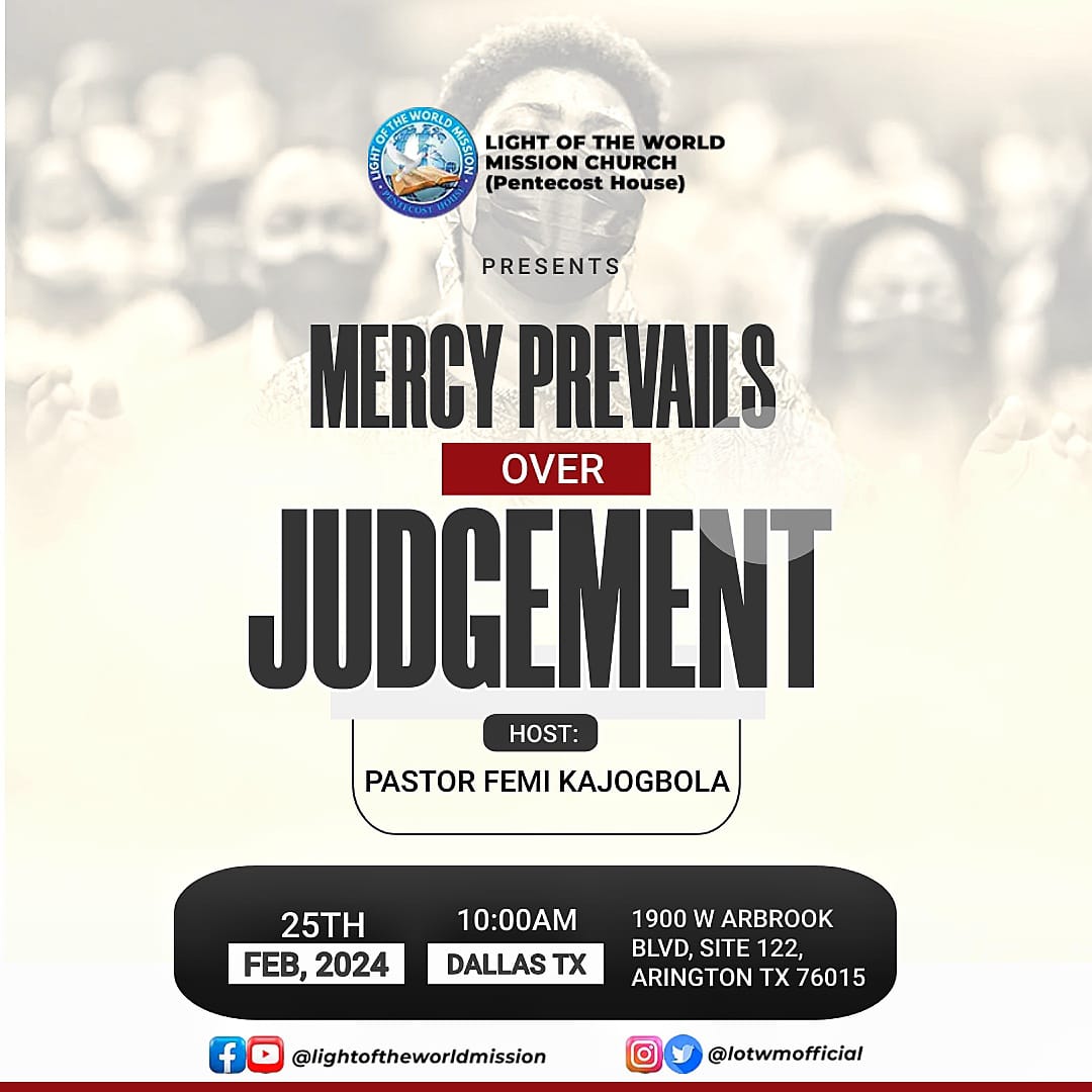 Join us this coming Sunday for a powerful service THEME: MERCY PREVAILS OVER JUDGEMENT 📅 25TH FEBRUARY, 2024🕐 10:00AM (Dallas,…