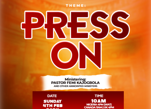 Join us this coming Sunday for a powerful service THEME: PRESS ON π 4TH FEBRUARY, 2024π 10:00AM (Dallas, Texas)π1900 W…