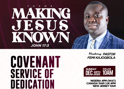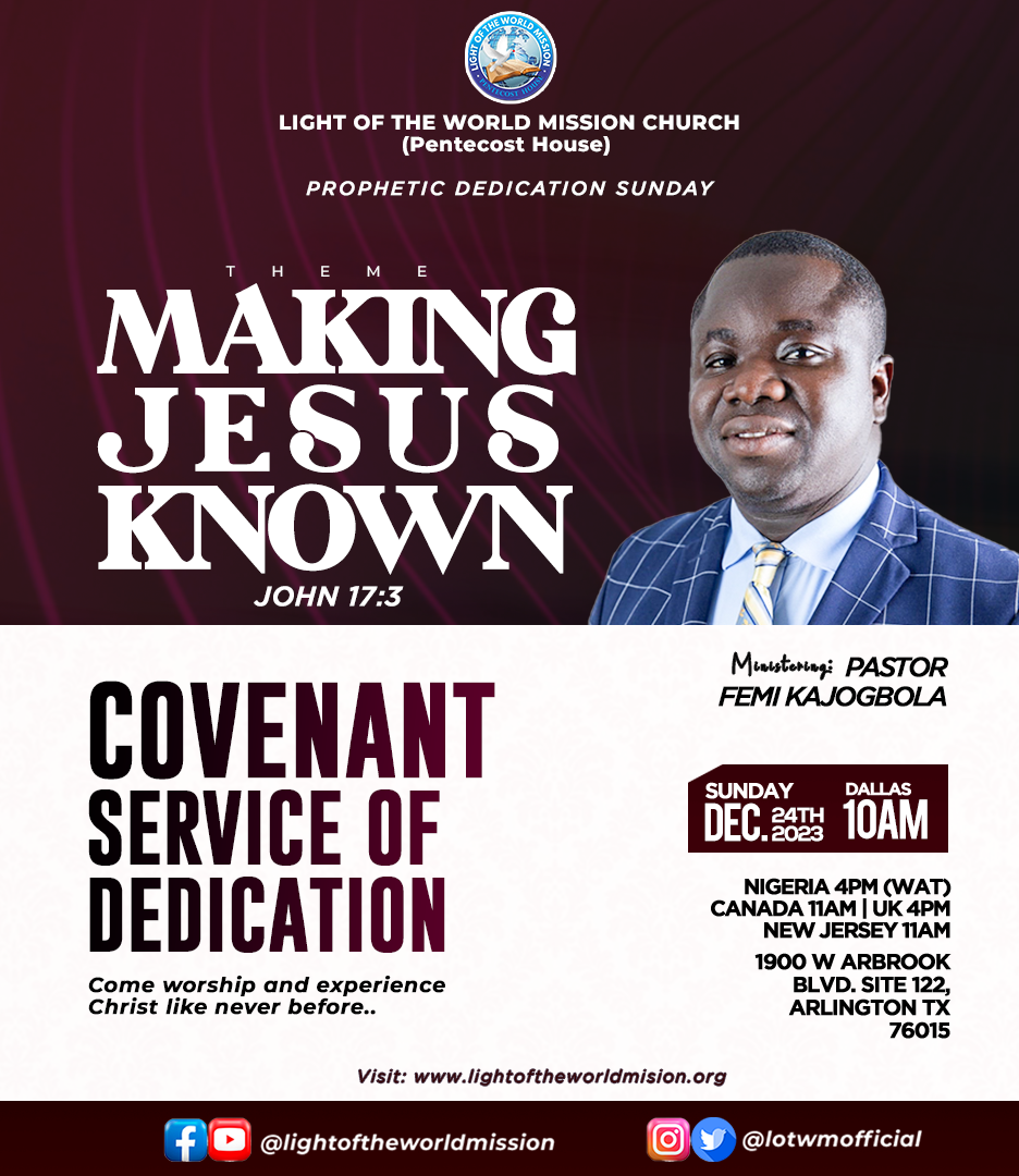 Join us this coming Sunday for a powerful service THEME: MAKING JESUS KNOWN đź“… 24TH DECEMBER, 2023Time: 10:00AM (Dallas, Texas)…